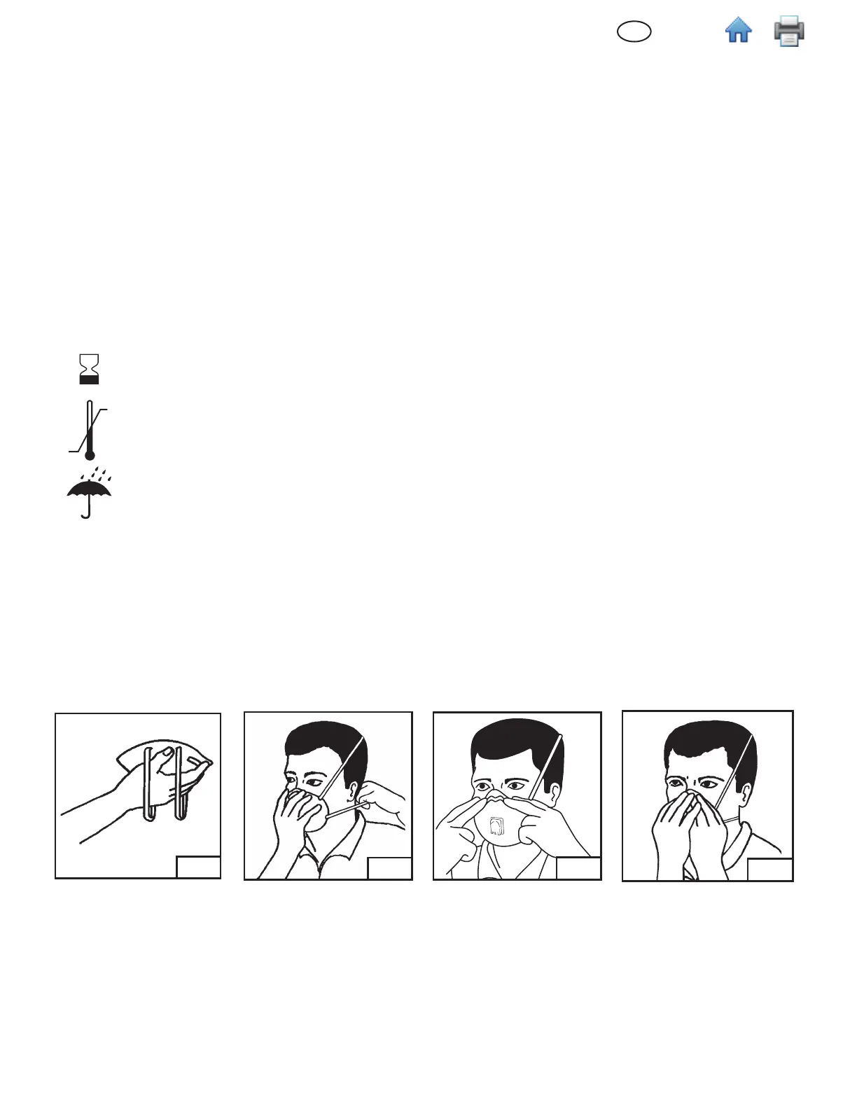 1. Si le respirateur est endommagé, souillé ou si la respiration devient difcile, quitter la zone contaminée et mettre le respirateur au rebut.