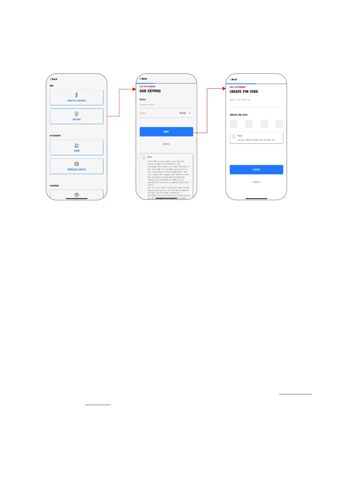 5. Press the "Next" button in the app and supply the keypad with power or activate the battery