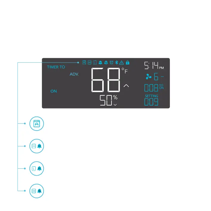 The alert icons are displayed at the top of the screen. Icons may flash when the controller signals