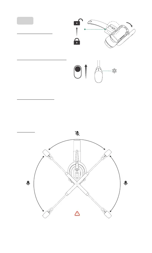 · 如图所示,麦杆处于±45°以内时,麦克风为关闭状态,此时指示灯红色常亮。