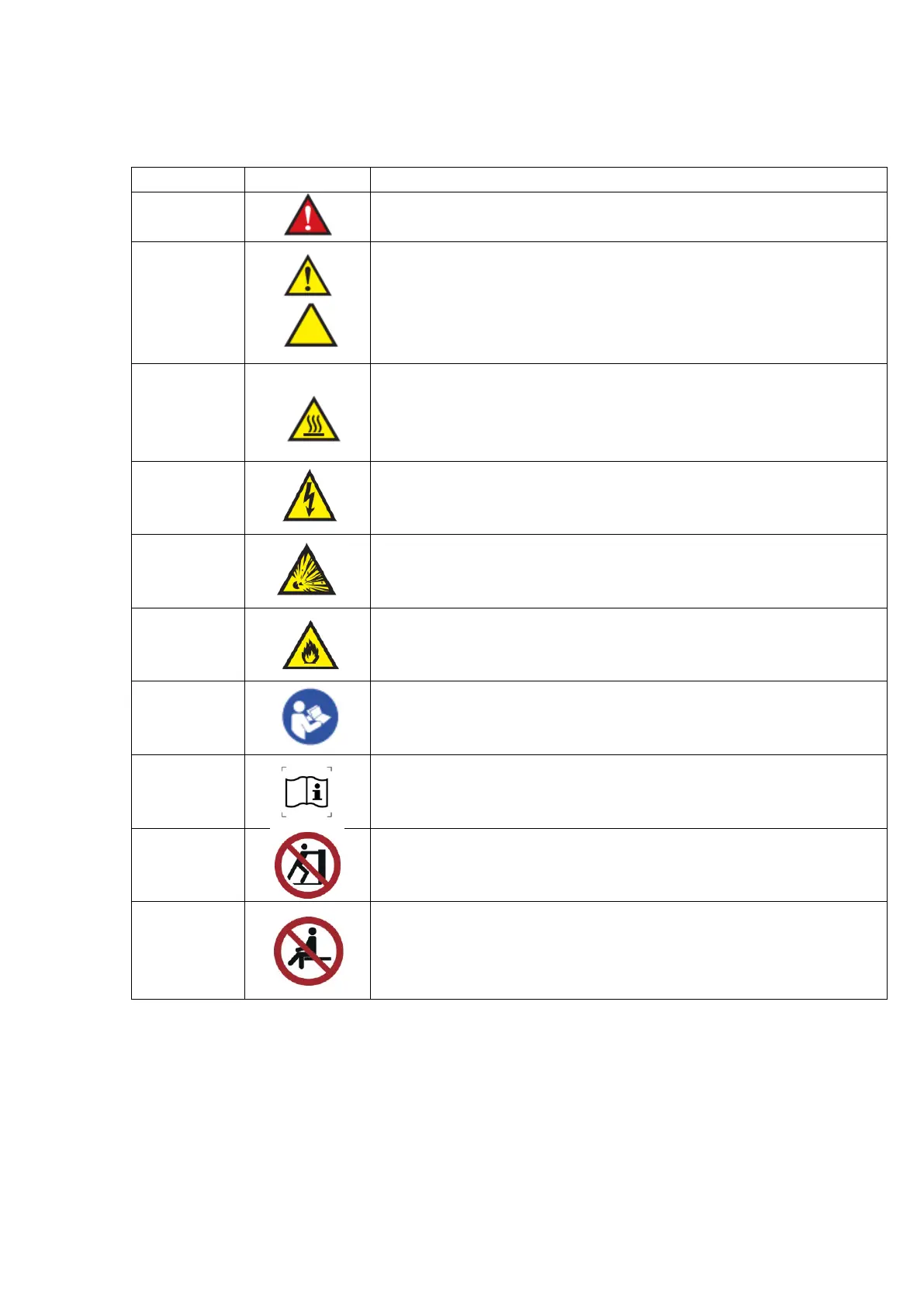 The following is a list identifying the various warning and caution icons used in this