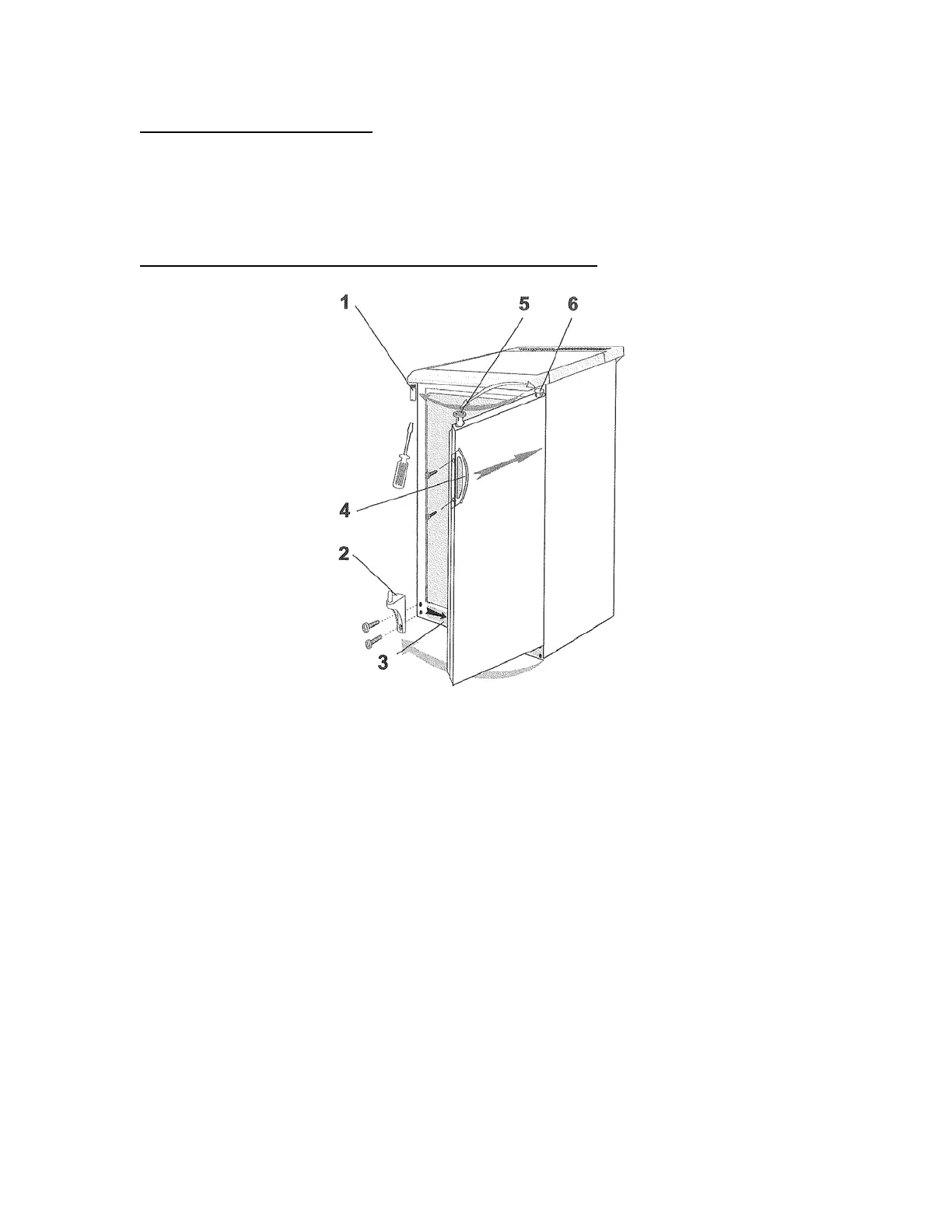 2. Lower hinge 5. Door hinge fixture