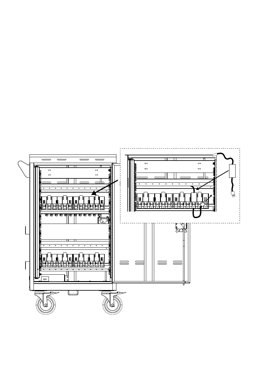 3. Pass the DC-end of the adapter cable to the front of the cart through the space
