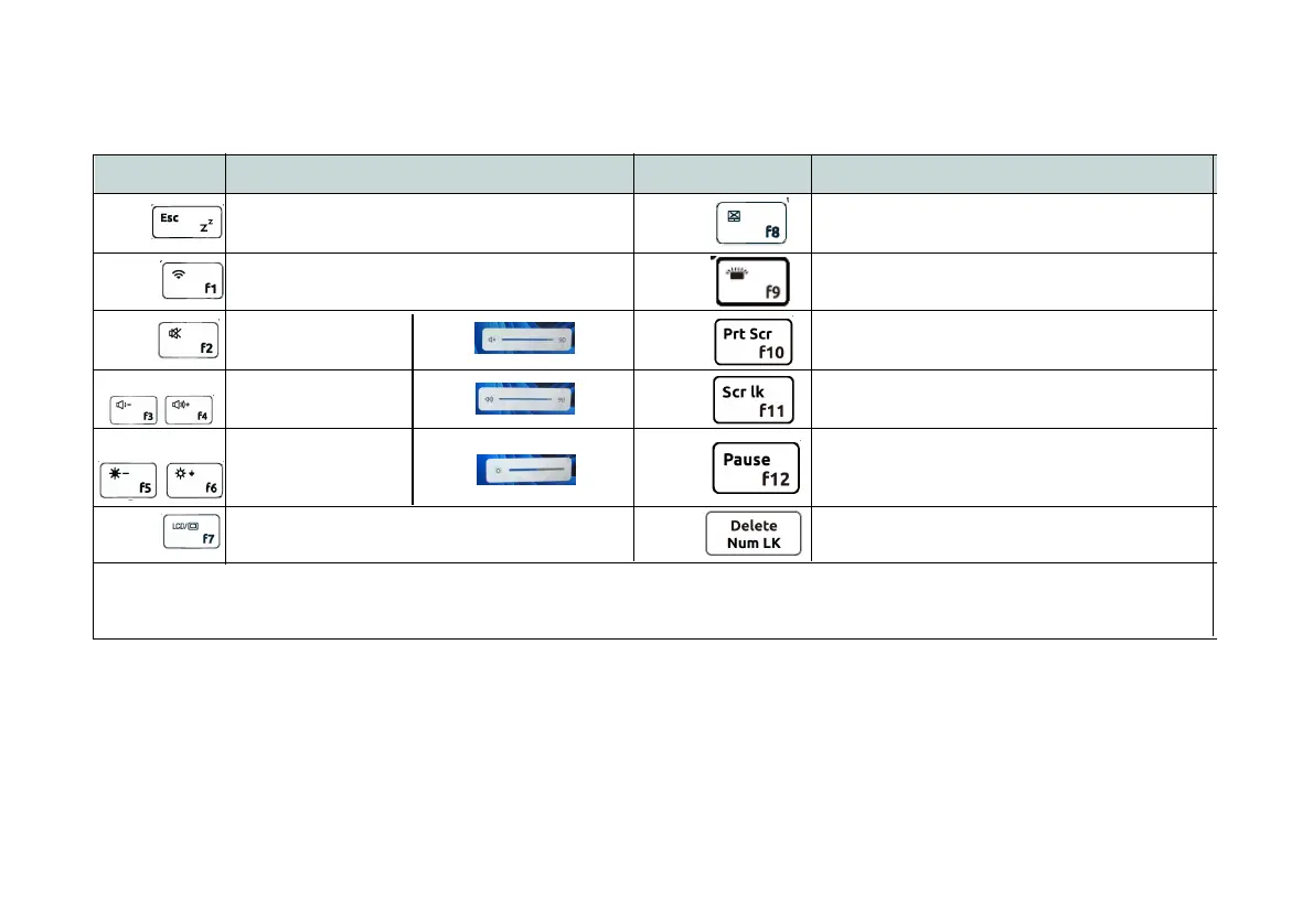 The function keys (F1 - F12 etc.) will act as hot keys when pressed while the Fn key is held down. In addition to
