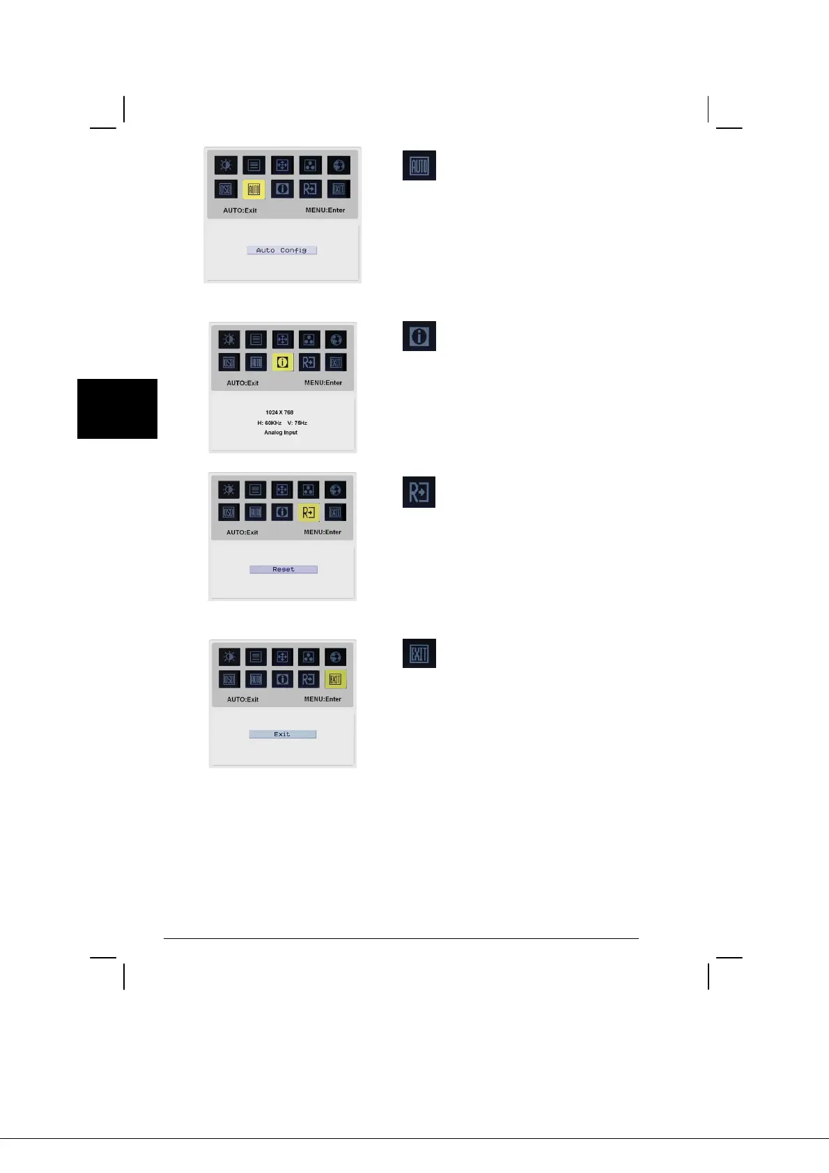 Per chiudere il menu OSD.