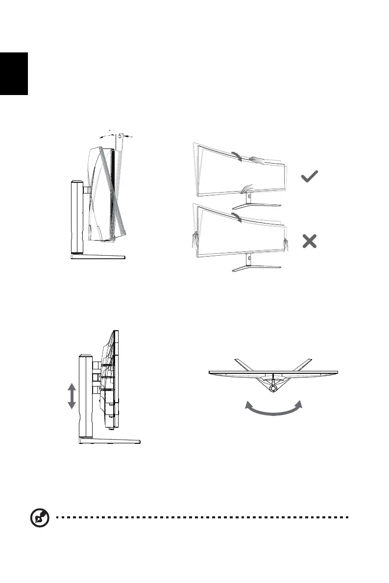 hold the edges of the monitor. The monitor can be adjusted to 15 degrees up or 5 degrees