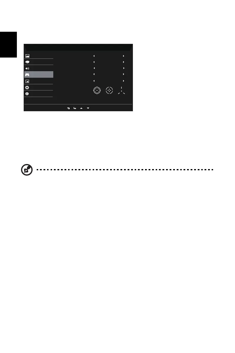 2. Using the button, select Gaming from the OSD. Then navigate to the setting you