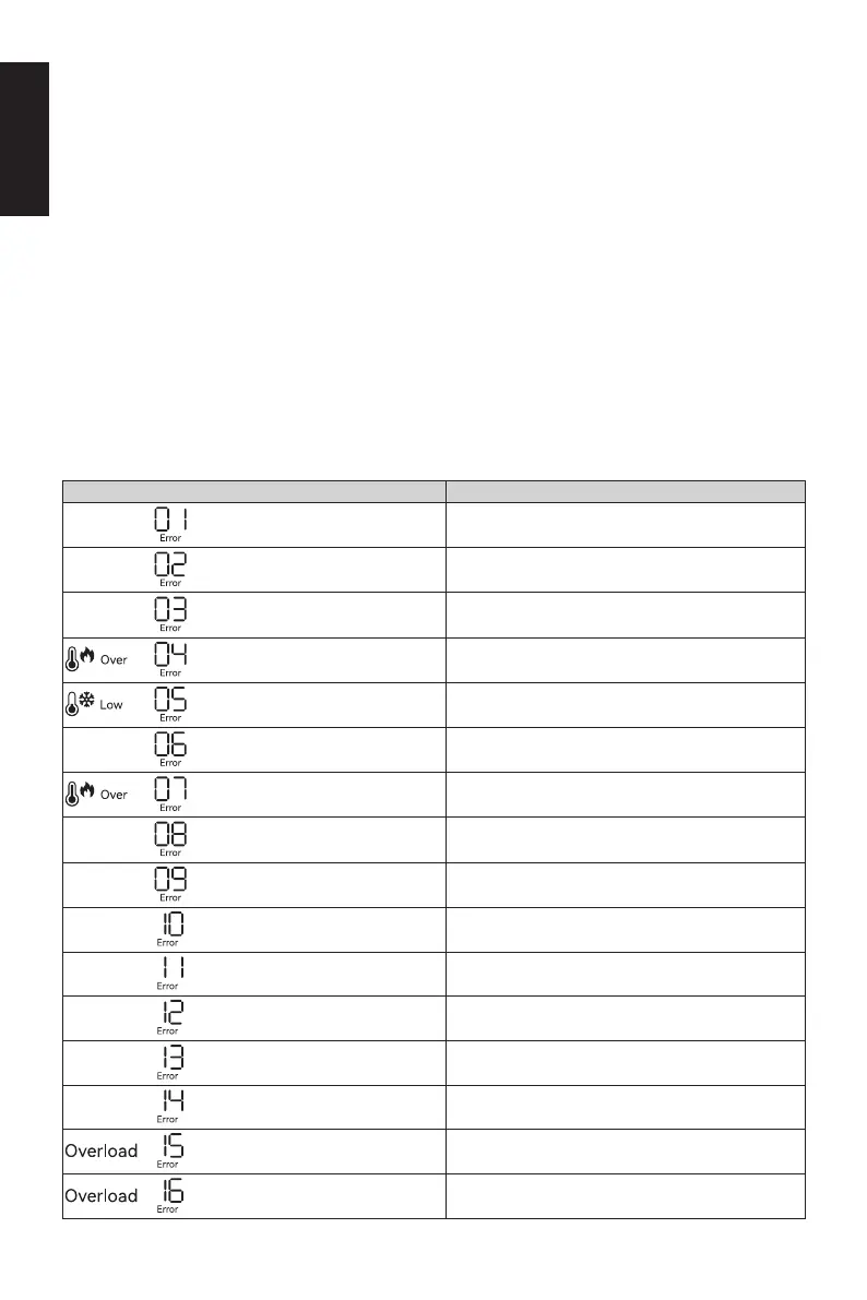 If the product displays an error code, please follow the steps below for troubleshooting. If the error code is still displayed after