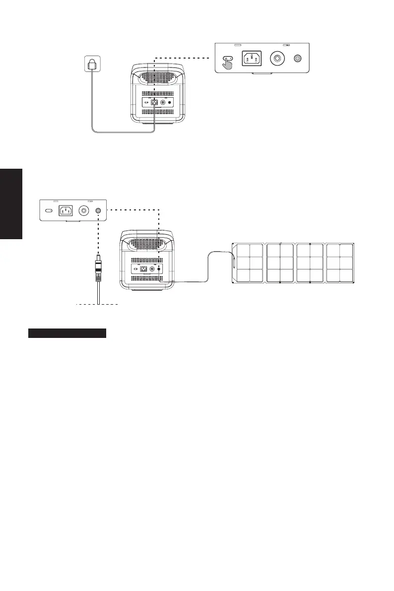 • Halten Sie Ihre Stromversorgungsanlage während des Aufladens von Hitze und direktem Sonnenlicht fern, um die