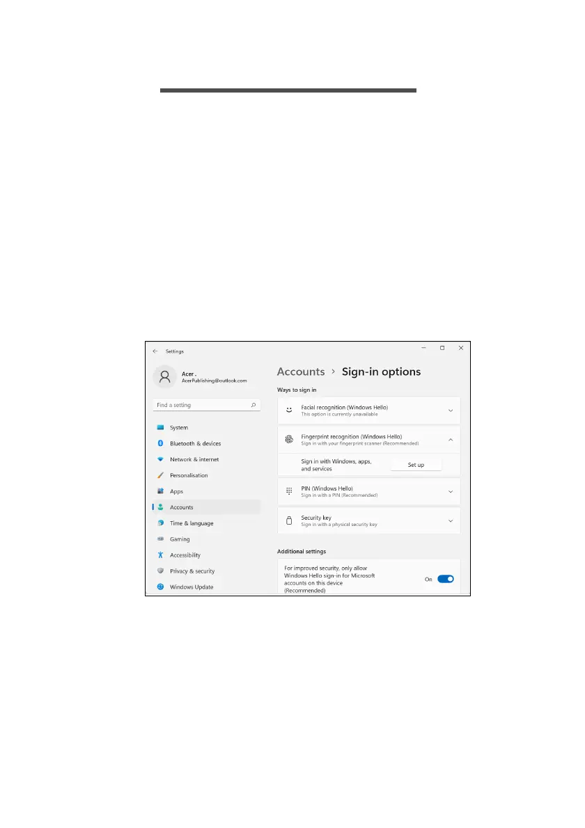 1. In Fingerprint recognition (Windows Hello), select Set up to