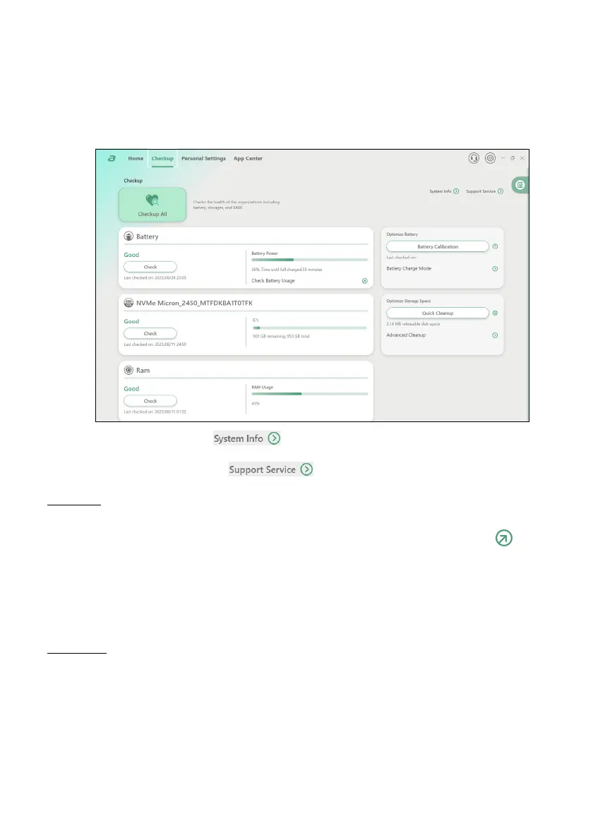 - System Info: Click on to view the comprehensive overview of the laptop’s