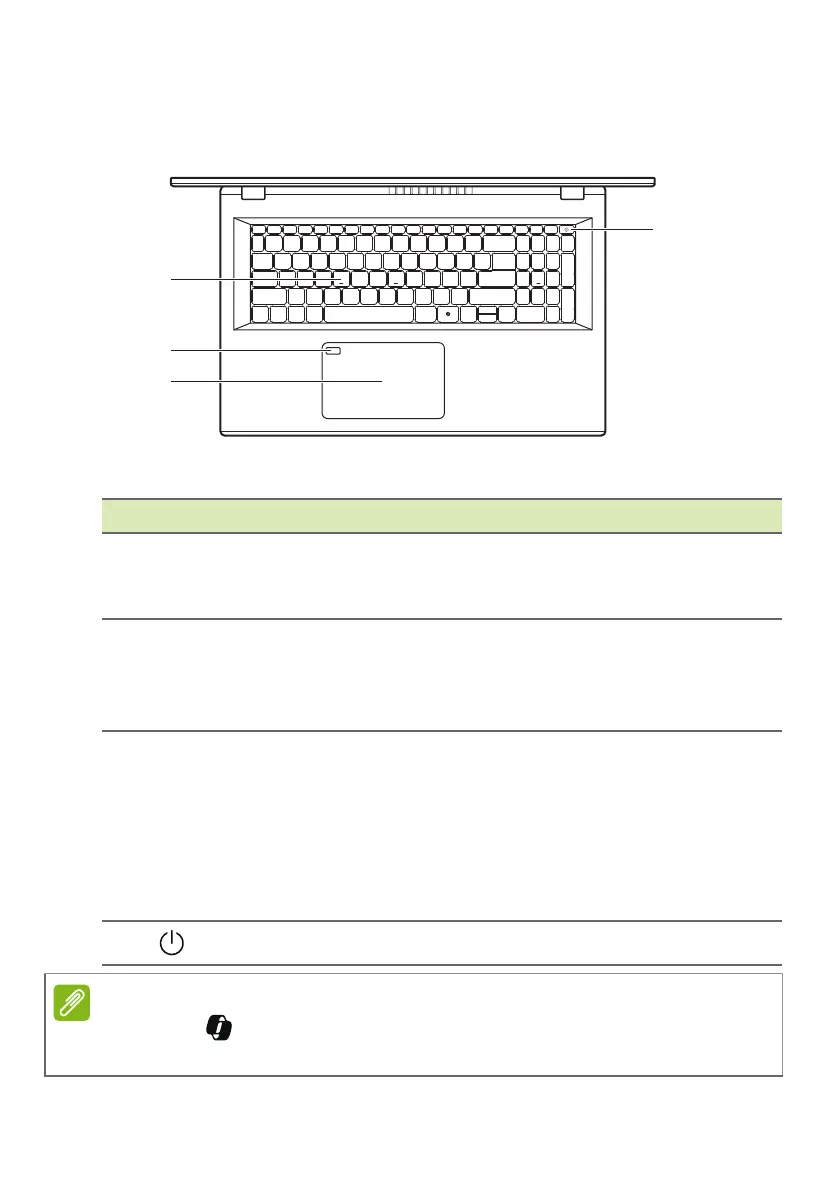 Power button Turns the computer on and off.