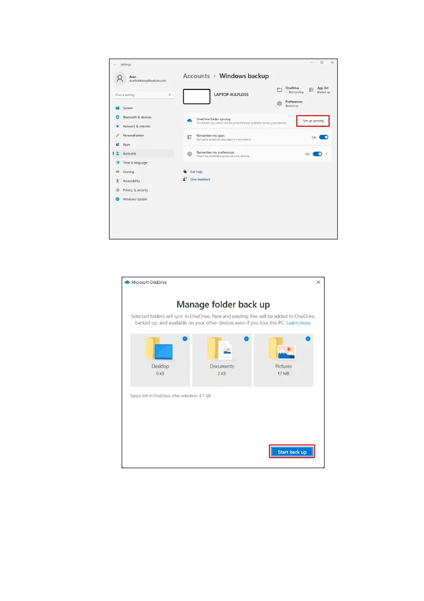 3. Click Set up syncing for OneDrive folder syncing to continue.