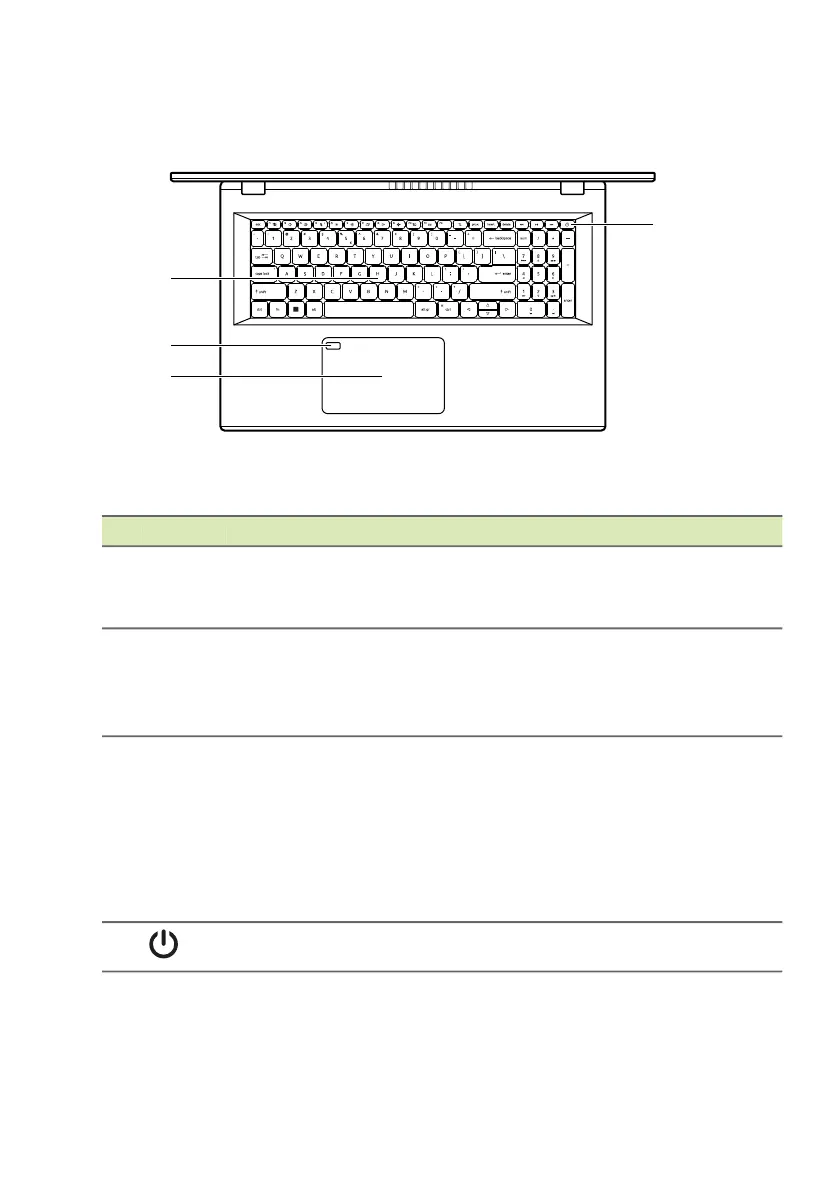4 Power button Turns the computer on and off.