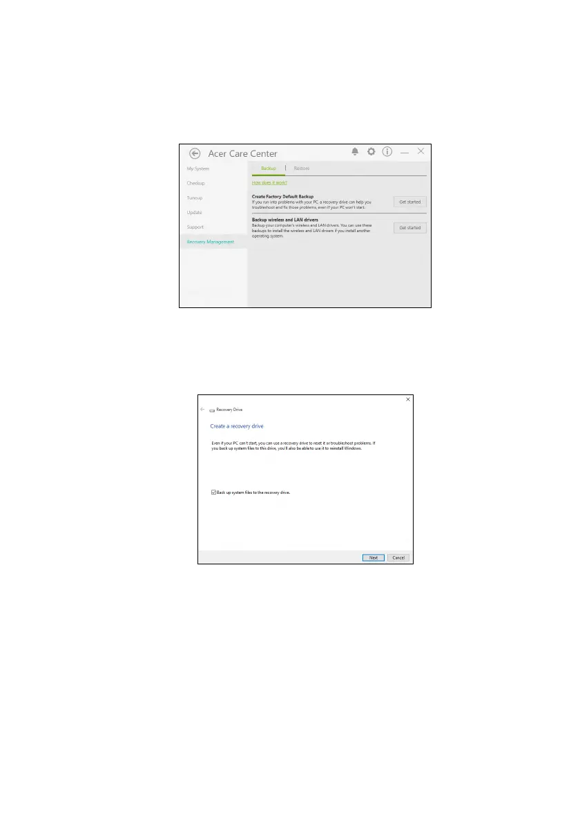 3. Zorg dat [Backup system files to the recovery drive]