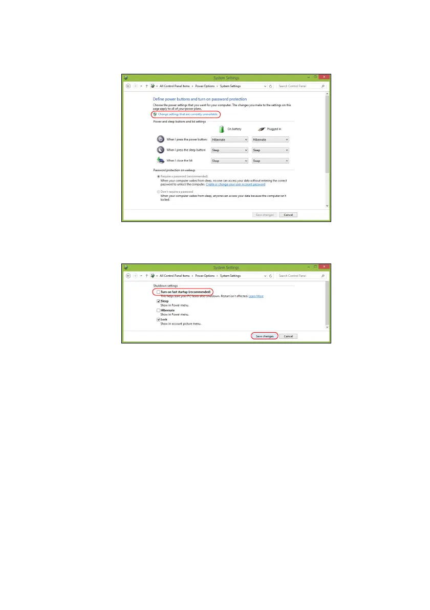6. Blader naar beneden en schakel [Turn on fast startup] (Snel