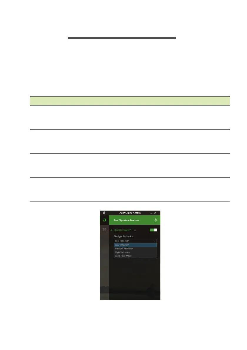 configureren. Vanaf hier kunt Acer Bluelight Shield in- of uitschakelen
