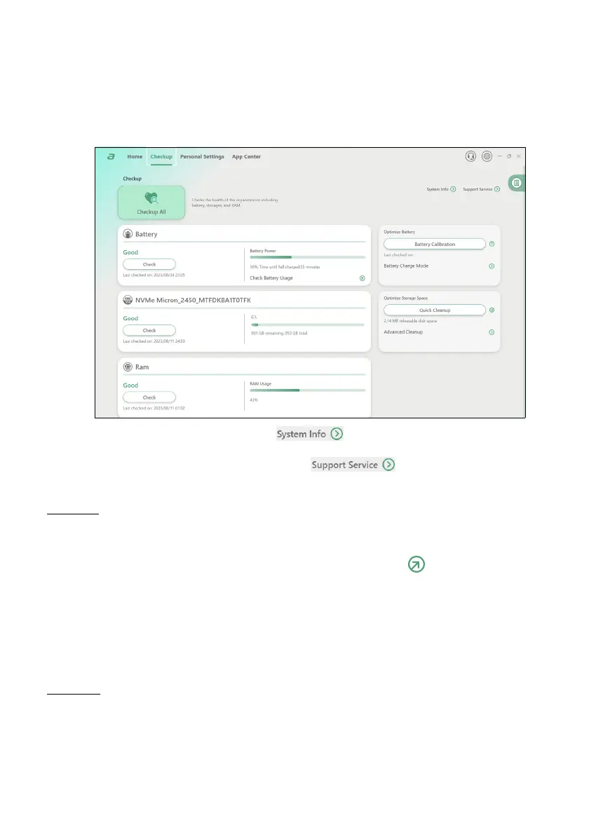 Selecteer het tabblad [Checkup] (Controleren) om met één klik snel