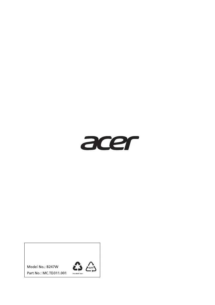 Bekijk gratis de handleiding van Acer B247W, stel vragen en lees de antwoorden op veelvoorkomende problemen, of gebruik onze assistent om sneller informatie in de handleiding te vinden of uitleg te krijgen over specifieke functies.