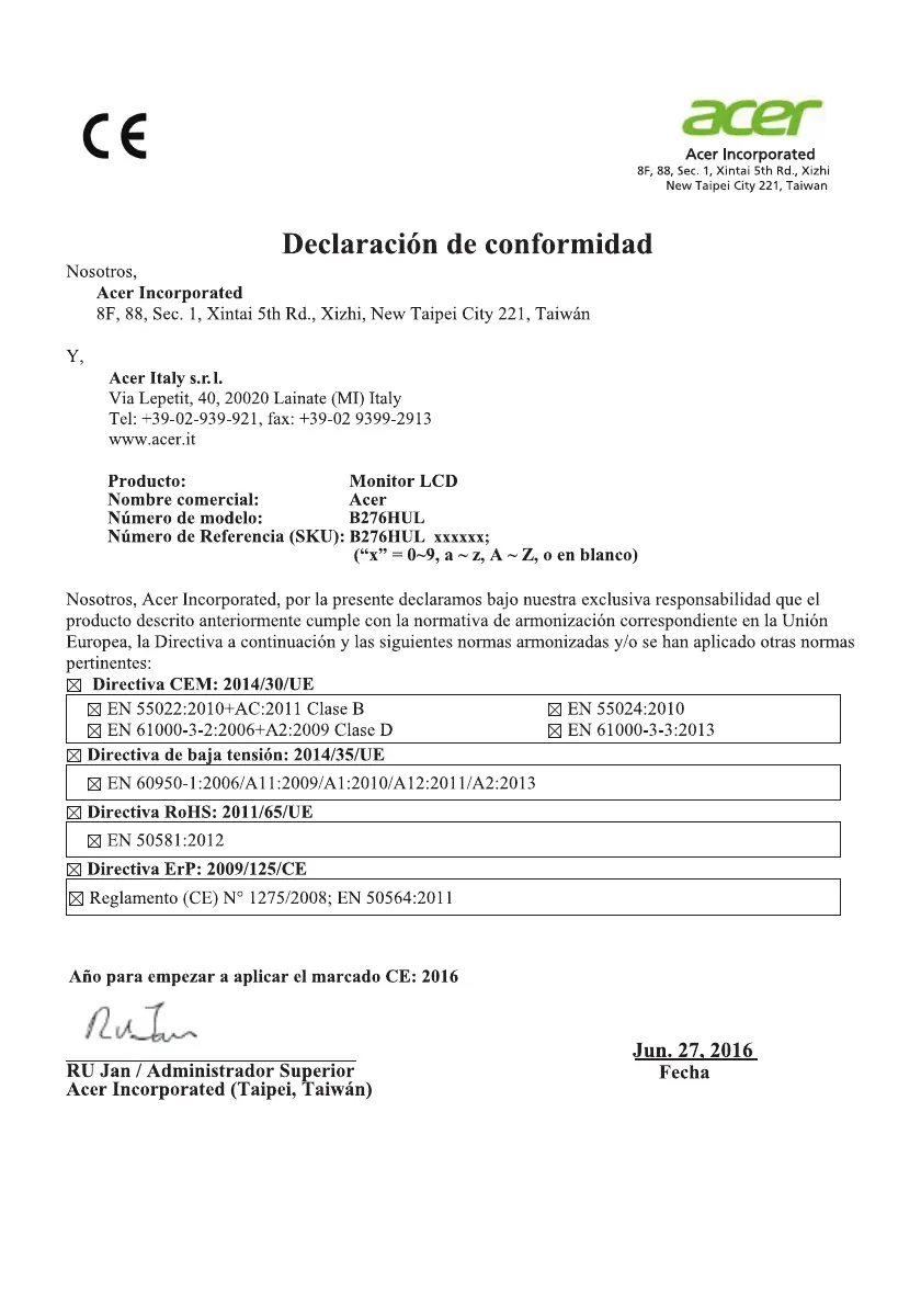 Bekijk gratis de handleiding van Acer B276HULE, stel vragen en lees de antwoorden op veelvoorkomende problemen, of gebruik onze assistent om sneller informatie in de handleiding te vinden of uitleg te krijgen over specifieke functies.