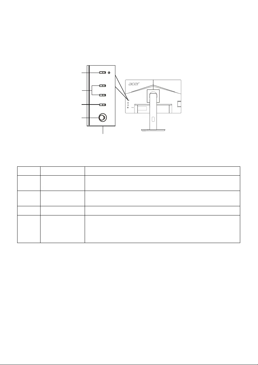 Zet de monitor aan/uit. Blauw betekent aan. Oranje