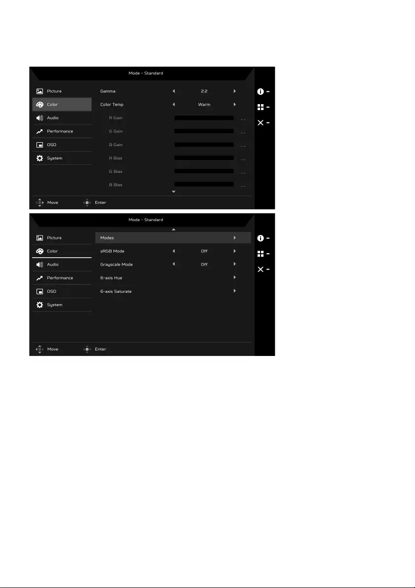5. Kleurtemp.: standaard is Warm. U kunt kiezen uit Koel, Warm, Normaal,