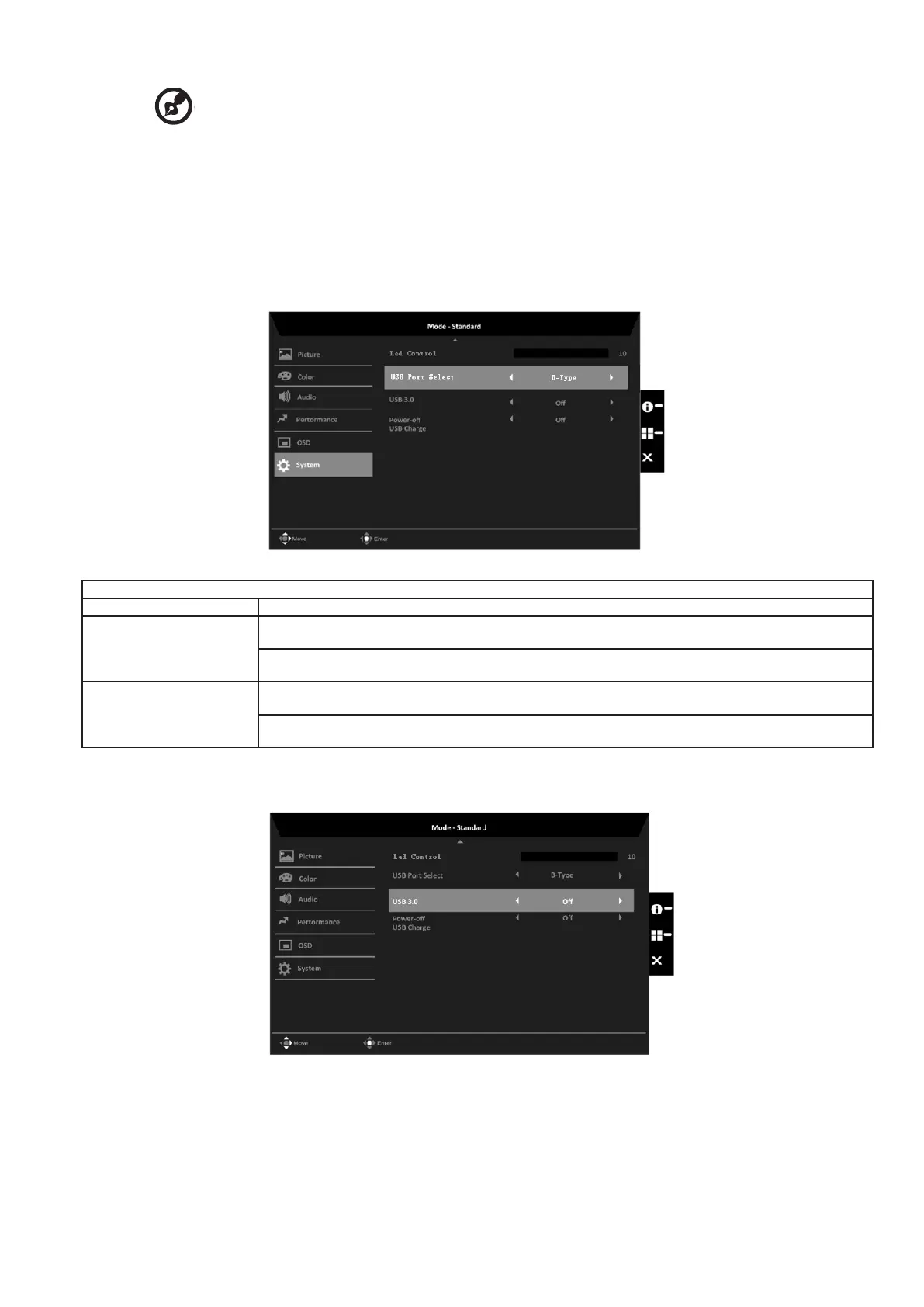 • Power-off USB charge (USB opladen bij uitschakelen): zet dit On (Aan) of Off (Uit).