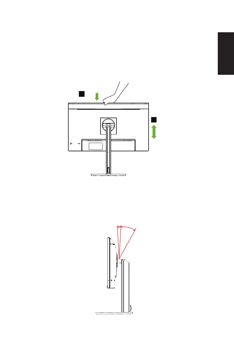 Nadat u op de bovenkant van de monitor hebt gedrukt, kunt u de hoogte van de monitor