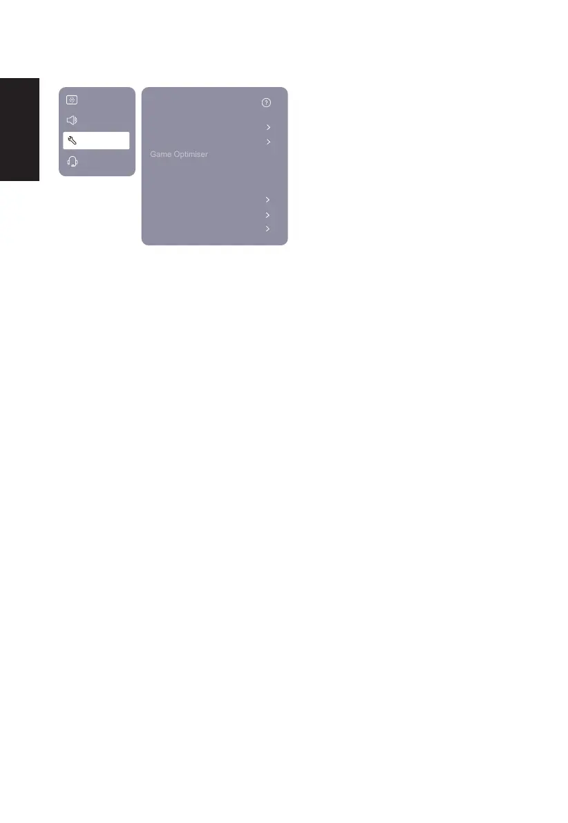 • Spel (Blauwlicht verminderen / Modus donkere kamer / Speldashboard / ALLM /