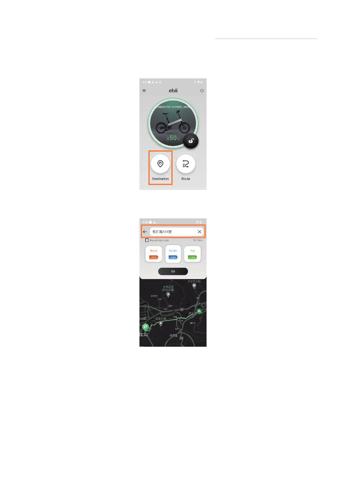10.1.3 ebiiGO App will plan the route to the destination and provide three power assistance suggestion