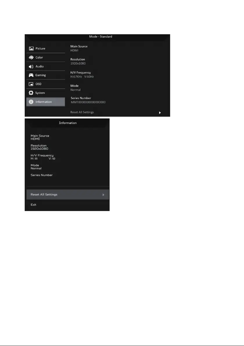 2. Reset All Settings (Alle inst. Resetten): Alle instellingen terug instellen