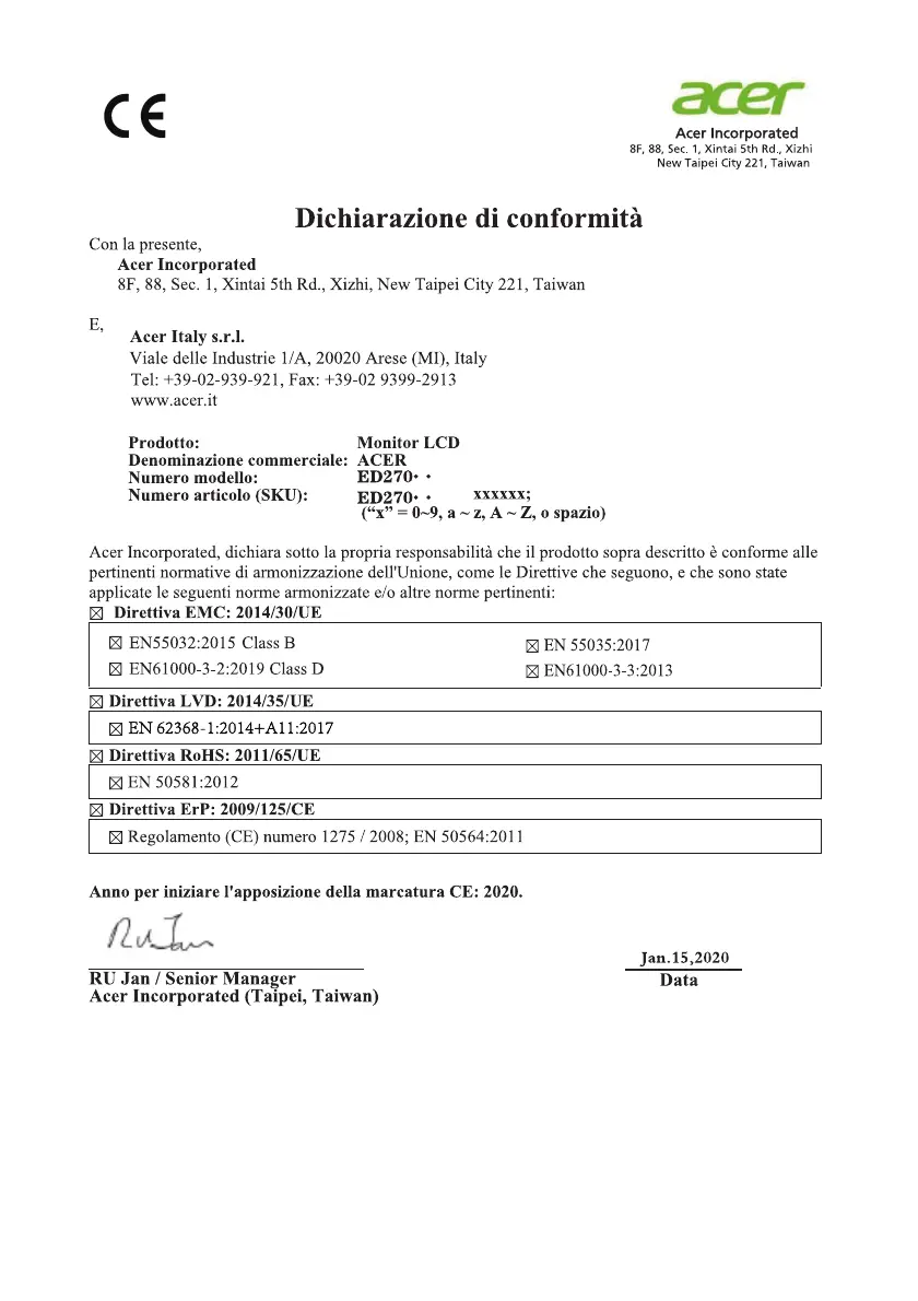 Bekijk gratis de handleiding van Acer ED270UP, stel vragen en lees de antwoorden op veelvoorkomende problemen, of gebruik onze assistent om sneller informatie in de handleiding te vinden of uitleg te krijgen over specifieke functies.