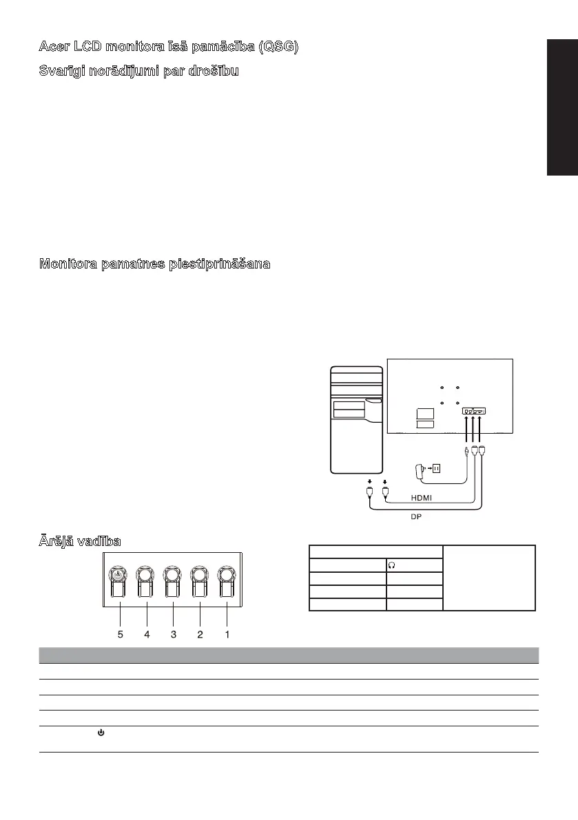 • Acer neuzņemas atbildību par bojājumiem, kas radušies, izmantojot tīrīšanas līdzekļus uz amonjaka vai spirta bāzes.
