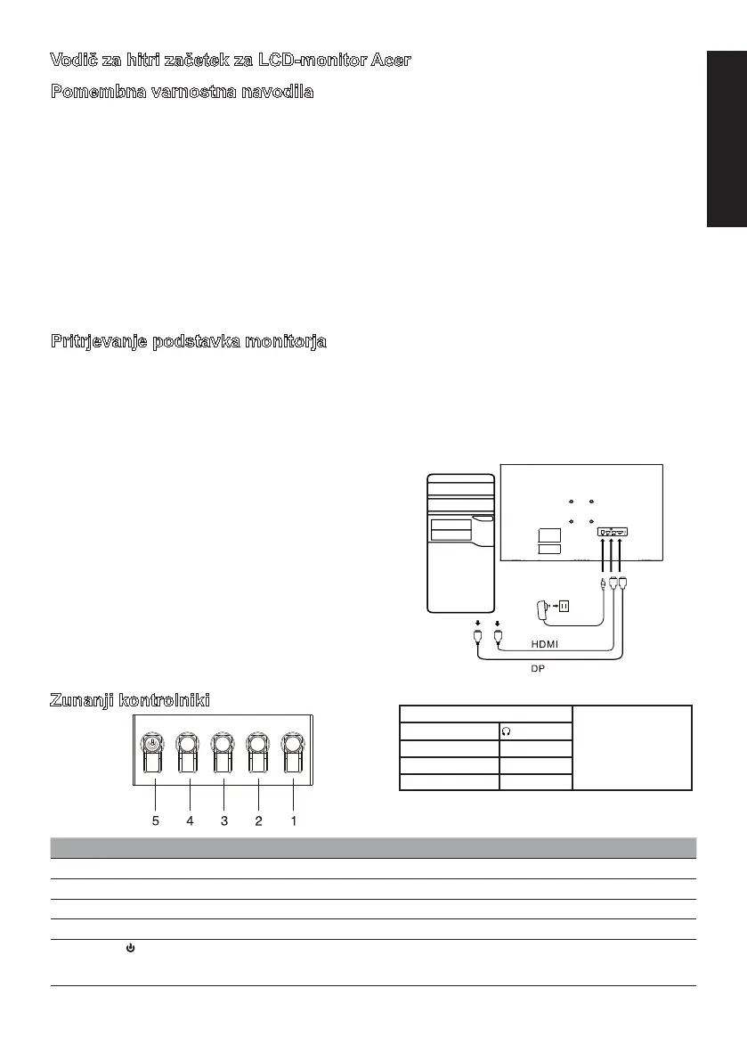 • Podjetje Acer ne odgovarja za poškodbe, nastale zaradi uporabe čistil na osnovi amoniaka ali alkohola.