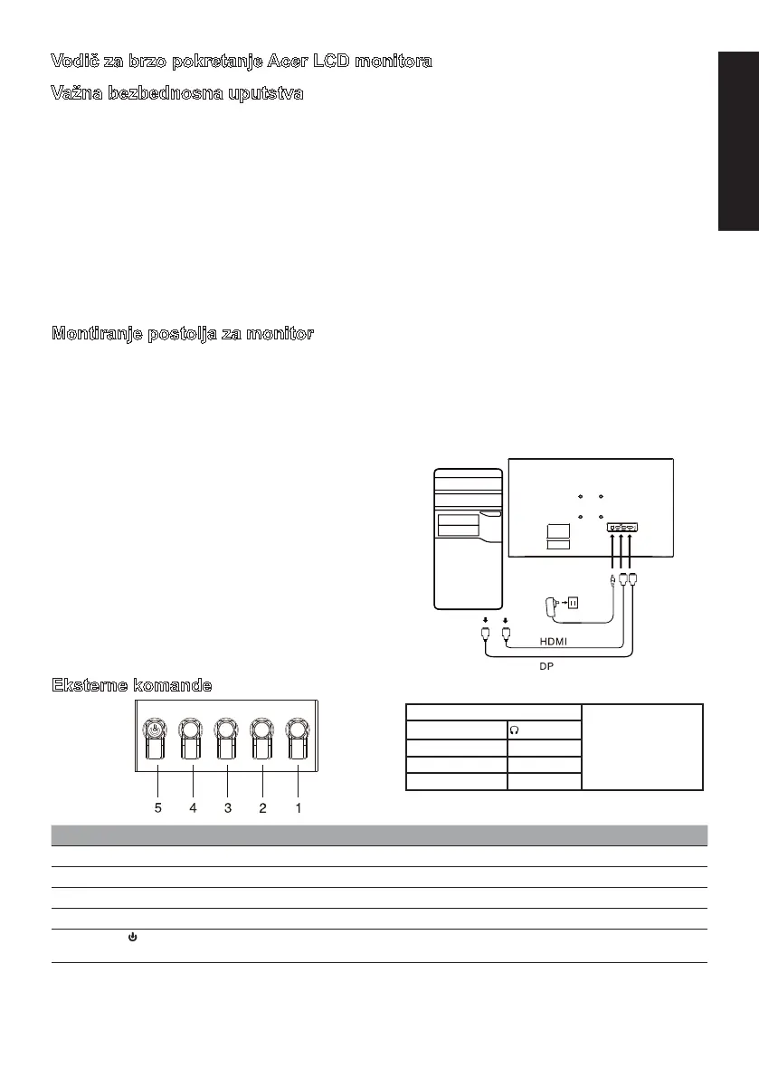 • Firma Acer neće biti odgovorna za oštećenja nastala korišćenjem sredstava za čišćenje na bazi amonijaka ili alkohola .