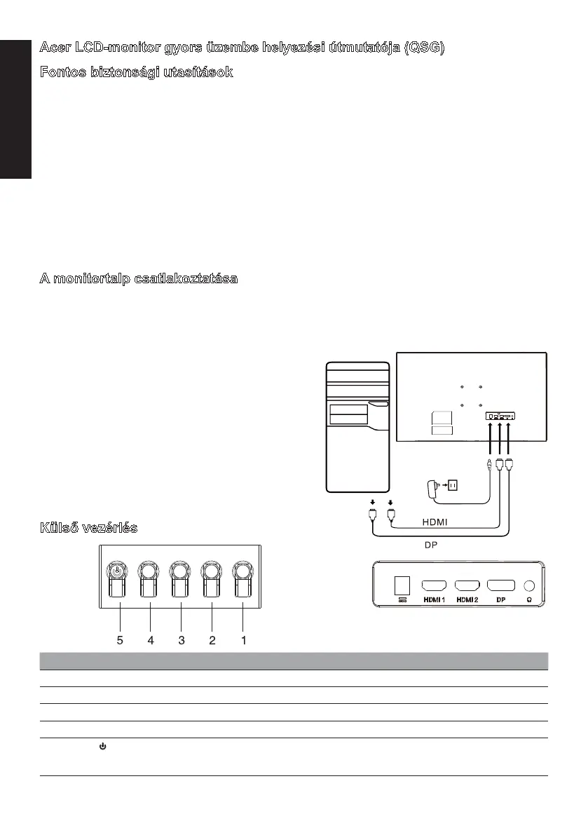 Acer LCD-monitor gyors üzembe helyezési útmutatója (QSG)
