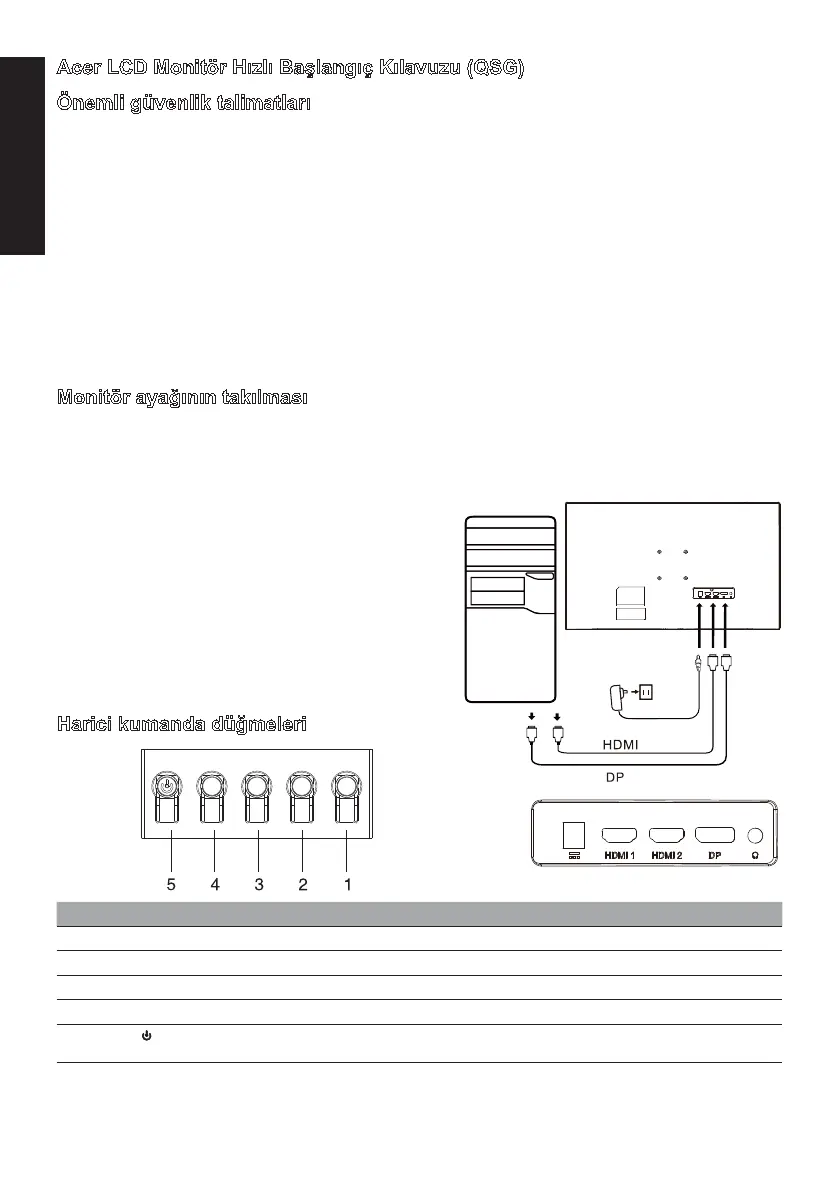 Acer LCD Monitör Hızlı Başlangıç Kılavuzu (QSG)
