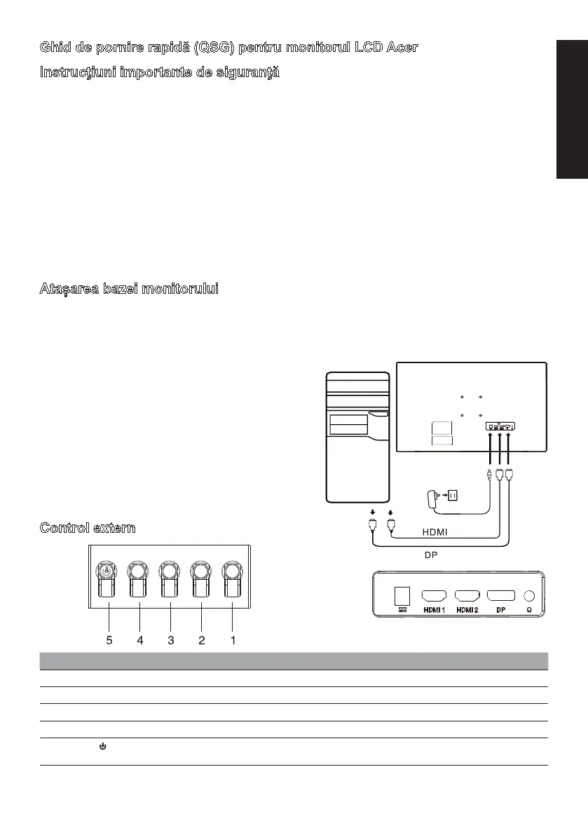Ghid de pornire rapidă (QSG) pentru monitorul LCD Acer