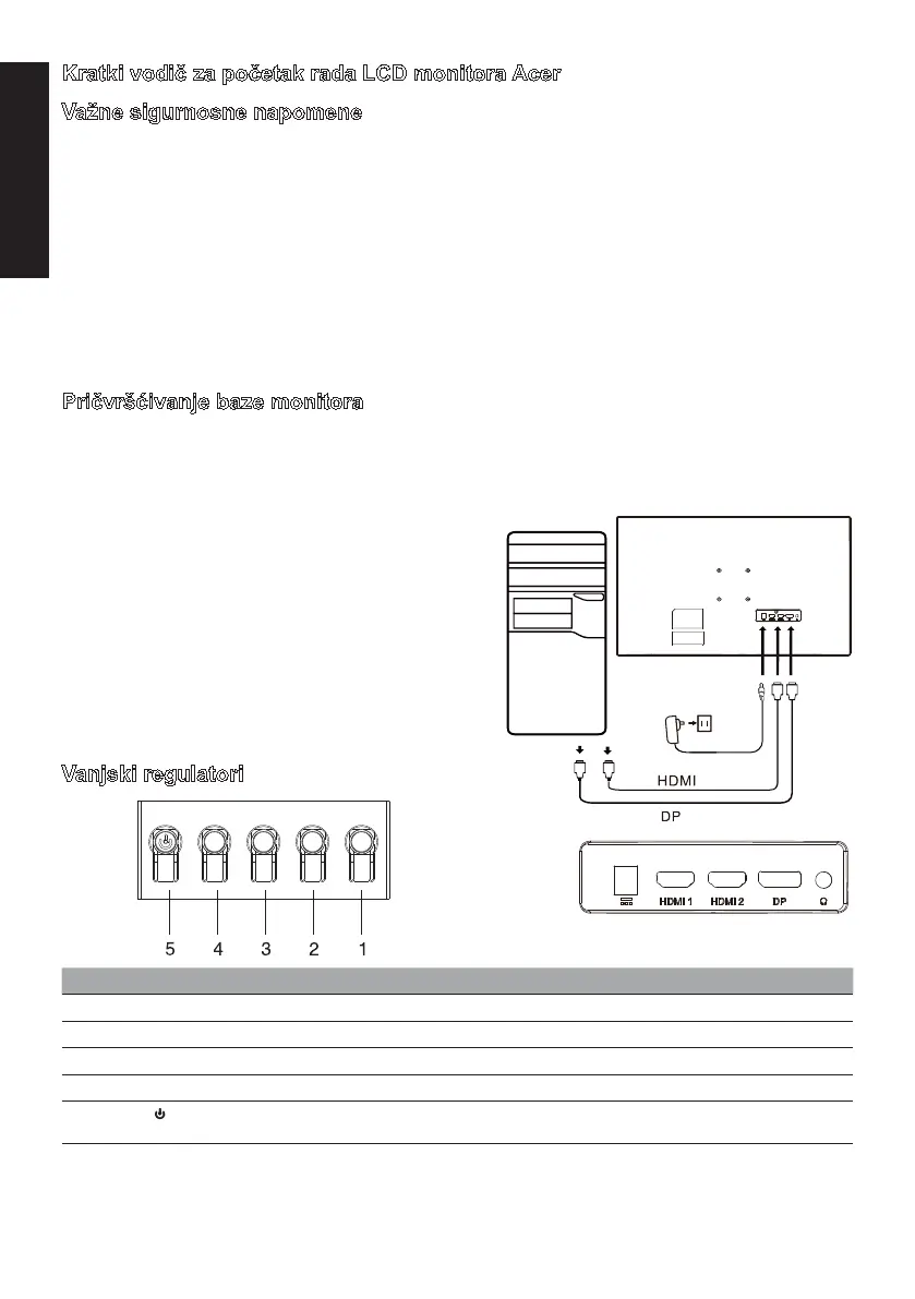 1. Raspakirajte bazu monitora i stavite je na glatku radnu površinu.