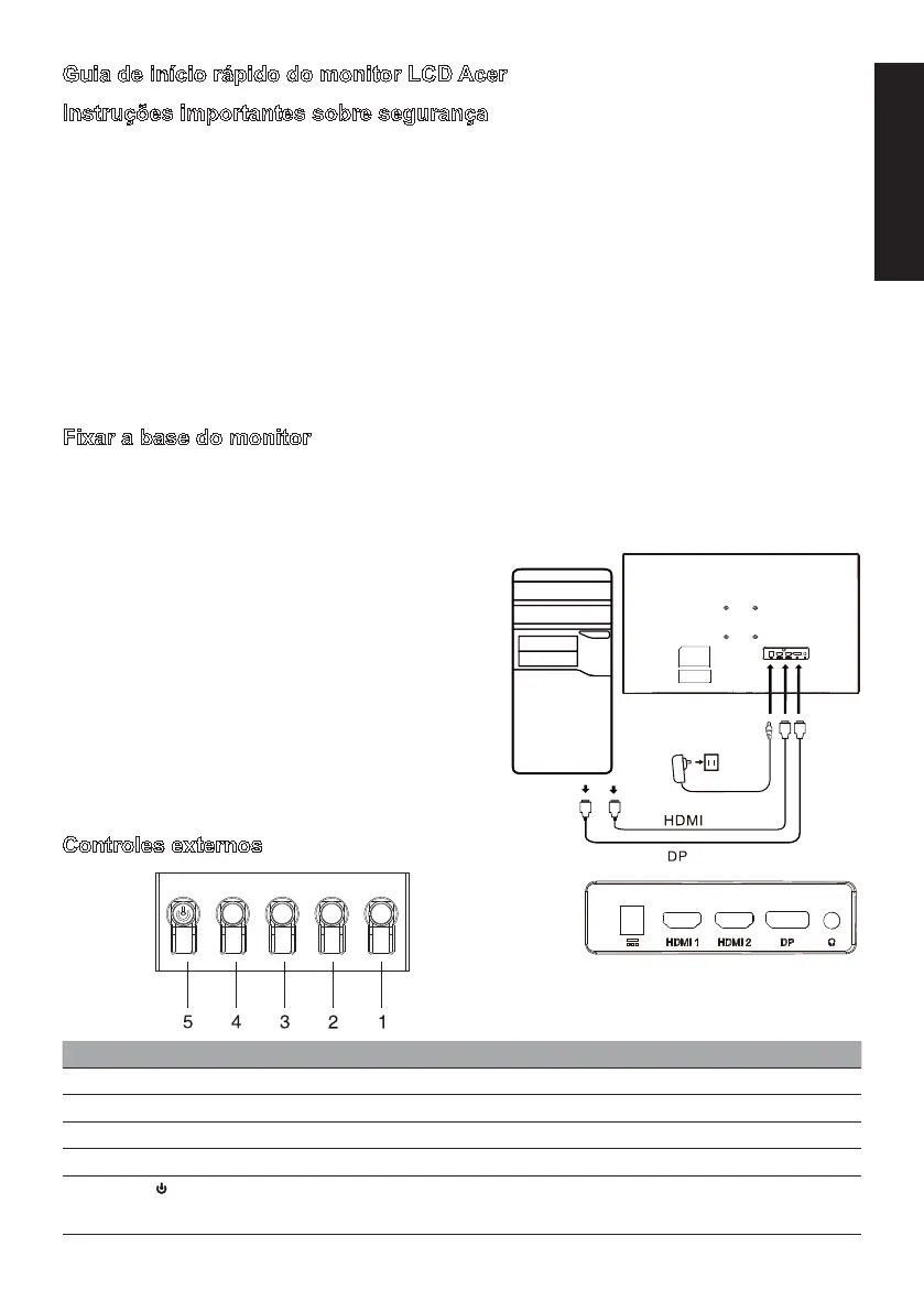 monitor e a outra extremidade na porta HDMI/DP do seu computador.