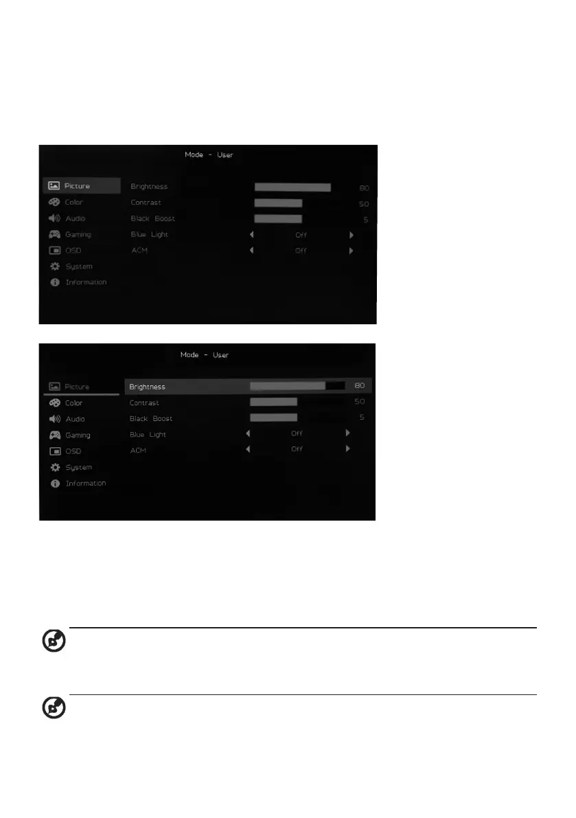 2. Use Buttons 3/4 to select Picture from the OSD. Double-press Button 1 to