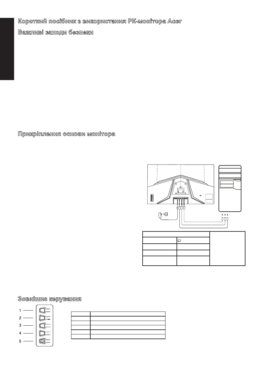 • Компанія Acer не несе відповідальність за пошкодження внаслідок використання будь-яких засобів для чищення на основі