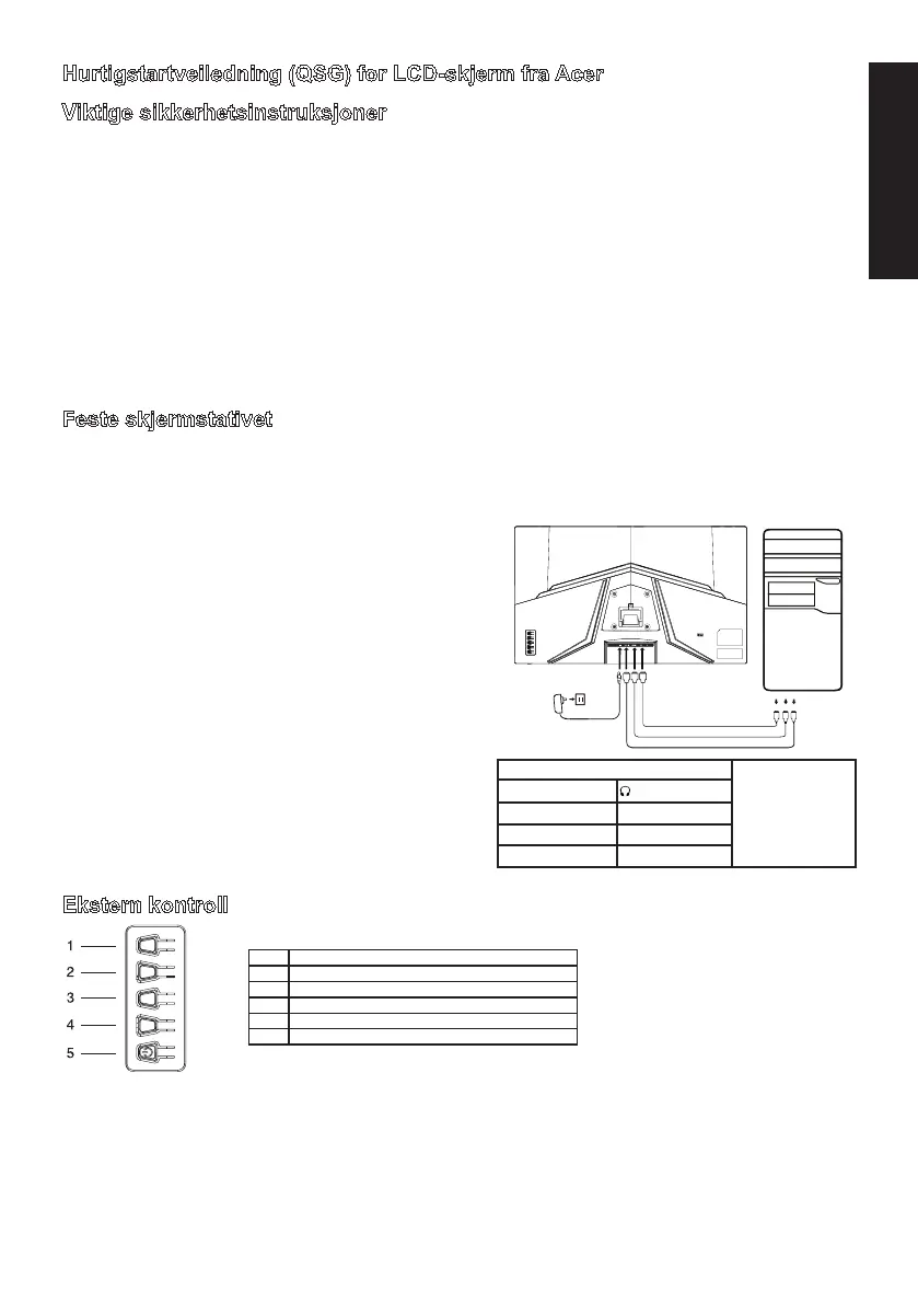 Hurtigstartveiledning (QSG) for LCD-skjerm fra Acer