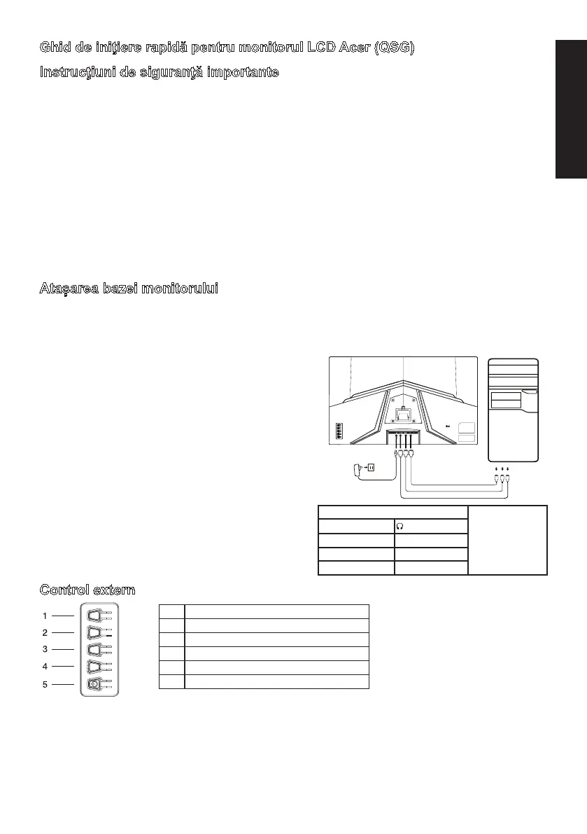 Ghid de iniţiere rapidă pentru monitorul LCD Acer (QSG)
