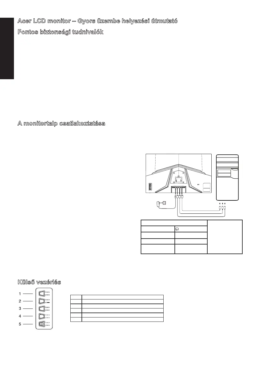 Acer LCD monitor – Gyors üzembe helyezési útmutató