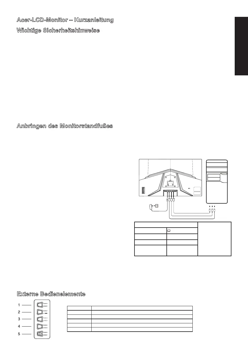 • Flüssigkeit darf niemals direkt oder indirekt auf den Bildschirm oder in das Monitorgehäuse gelangen.