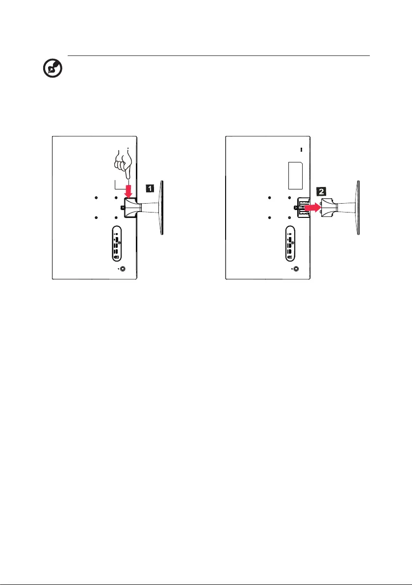 2. Nadat de ontgrendelpal is ingedrukt, verwijdert u het voetstuk van de
