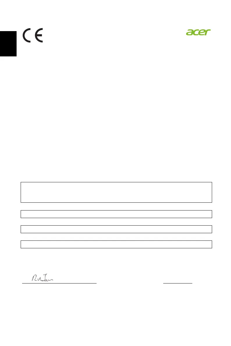 We, Acer Incorporated, hereby declare under our sole responsibility that the product
