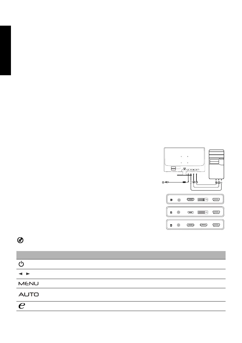 Monitoriaus korpuso angos yra skirtos vėdinimui. Kad monitorius neperkaistų, šių angų negalima užblokuoti ar uždengti. Taip pat
