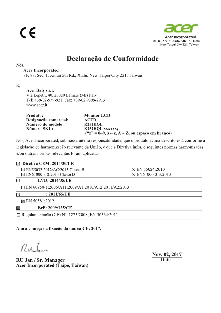 Bekijk gratis de handleiding van Acer K252HQL, stel vragen en lees de antwoorden op veelvoorkomende problemen, of gebruik onze assistent om sneller informatie in de handleiding te vinden of uitleg te krijgen over specifieke functies.